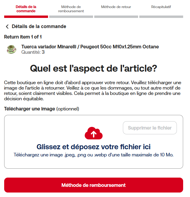 Étape 3: Pour que nous puissions approuver ta demande de retour, il est obligatoire de joindre une image de l’article.