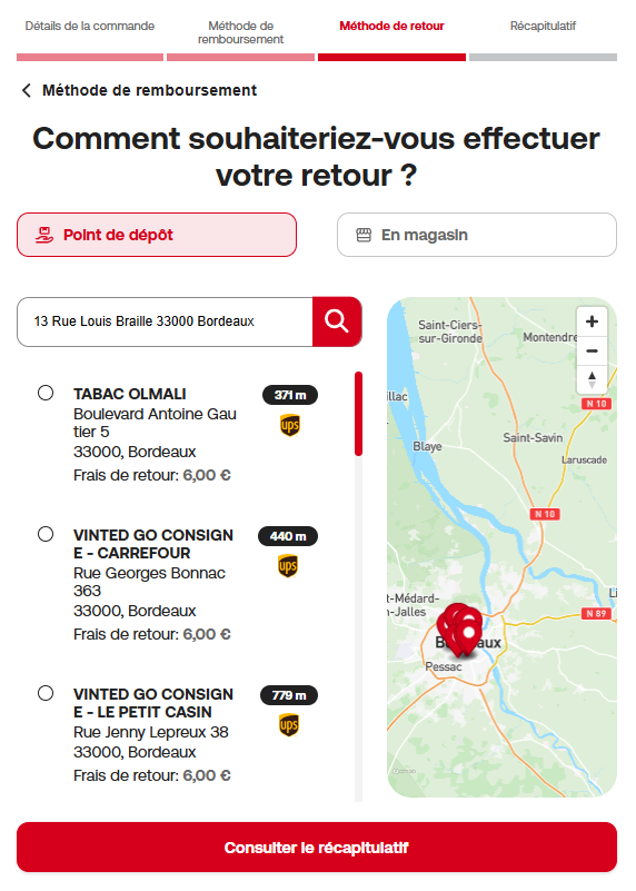 Sélectionne le point de dépôt qui te convient le mieux sur la carte ou dans la liste.