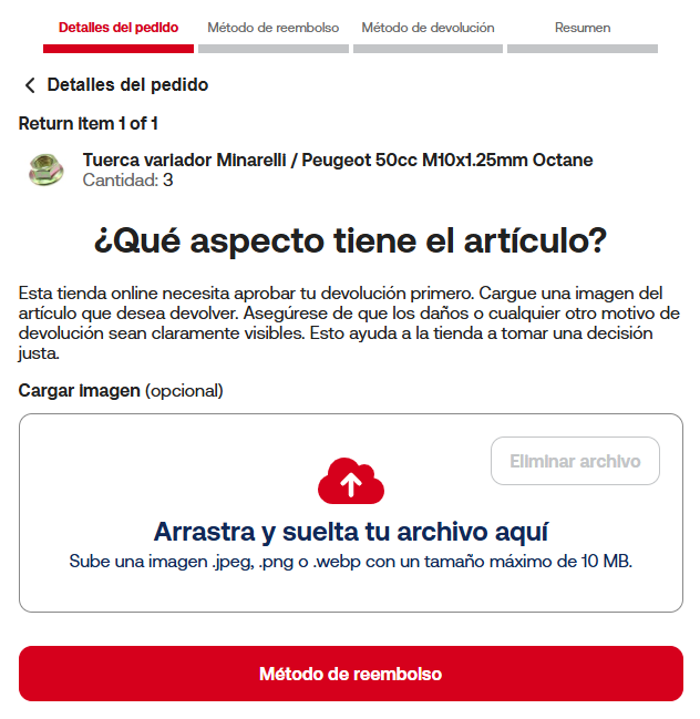 Passo 3: Para podermos aprovar o teu pedido de devolução, é obrigatório anexar uma imagem do artigo.